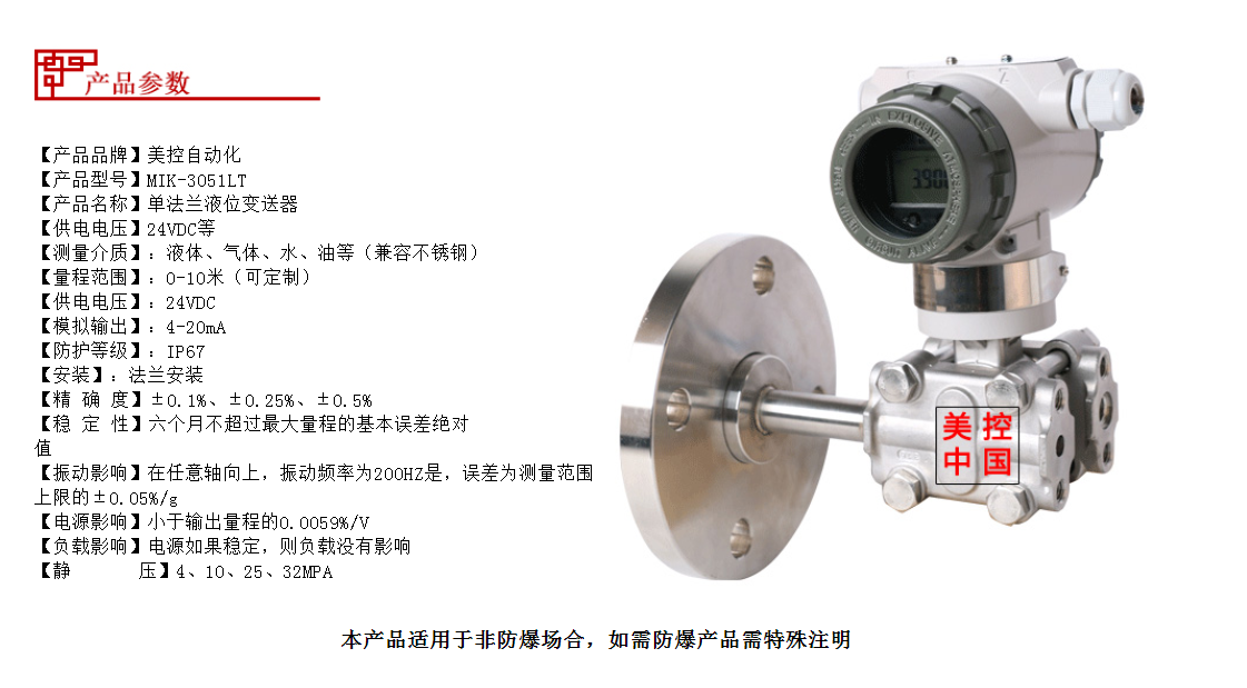MIK-3051LT型單法蘭式壓力變送器是我公司引進(jìn)國(guó)外先進(jìn)技術(shù)和設(shè)備生產(chǎn)的新型變送器,關(guān)鍵原材料,元器件和零部件均源自進(jìn)口,整機(jī)經(jīng)過嚴(yán)格組裝和測(cè)試,該產(chǎn)品具有設(shè)計(jì)原理先進(jìn)、品種規(guī)格齊全、安裝使用簡(jiǎn)便等特點(diǎn)。