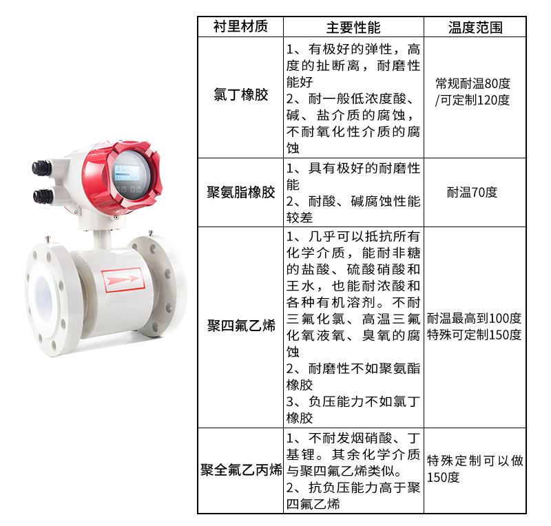 紅外觸摸式電磁流量計是根據法拉第電磁感應定律進行流量測試的流量計。電磁流量計的優點是壓損極小,可測流量范圍大。最大流量與最小流量的比值一般為10:1以上,適用的工業管徑范圍寬,最大可達3m,輸出信號和被測流量呈線性,精確度較高,可測量電導率≥5μs/cm的酸、堿鹽溶液、水、污水、腐蝕性液體以及泥漿、礦漿、紙漿等流體流量。