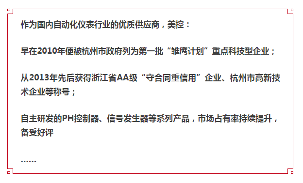 杭州美控自動(dòng)化技術(shù)有限公司位于杭州錢塘新區(qū),是一家主要從事過程自動(dòng)化儀表研發(fā)、制造、銷售及服務(wù)的高新技術(shù)企業(yè)。公司匯集了一大批國(guó)內(nèi)優(yōu)秀的自動(dòng)化、電子、機(jī)械和計(jì)算機(jī)等領(lǐng)域的技術(shù)專家。