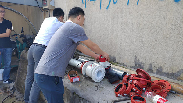 當天一早,李工和謝工就趕到金牛紡織進行現成服務,發現并指出了現場安裝上的存在的問題:電磁流量計的安裝緊鄰著止回閥,容易造成管道內流場的不穩定,導致測量不準,并針對該問題提出了修正方案。客戶對我司的產品及服務表達了高度的認可,并表示后續一定會形成長期的緊密合作。