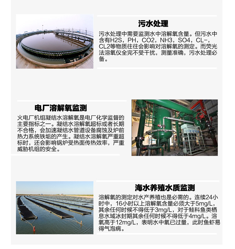 曝氣池也是生物處理系統的一部分,由于曝氣池在整個污水處理系統中非常重要,目前所用的方法也在不斷的研發出來,總體來說,曝氣池在朝著高效率、小體積、節省能源的方向發展。在曝氣池的出水口一般會安裝熒光法溶氧儀來監測水中的含氧量以判斷曝氣是否達到效果。曝氣池中的溶氧量是非常重要的指標,由于污水中的介質成分復雜,使用膜法溶氧儀非常難以測量。而熒光法溶氧儀只對氧分子產生反應,不會受硫化物干擾,不會極化,膜頭的壽命達一年以上,大大降低了維護成本。