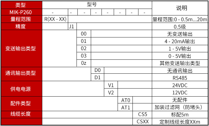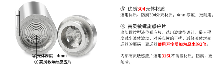 測量范圍:0~1m;0~2m;0~3m;0~4m;0~10m;特殊規格可定制,最大200m水深