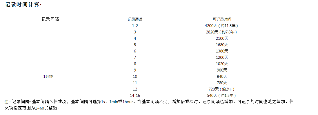 存儲時間:3天-2年(具體時間根據記錄間隔和通道數來確定),數據可存儲十年不丟失